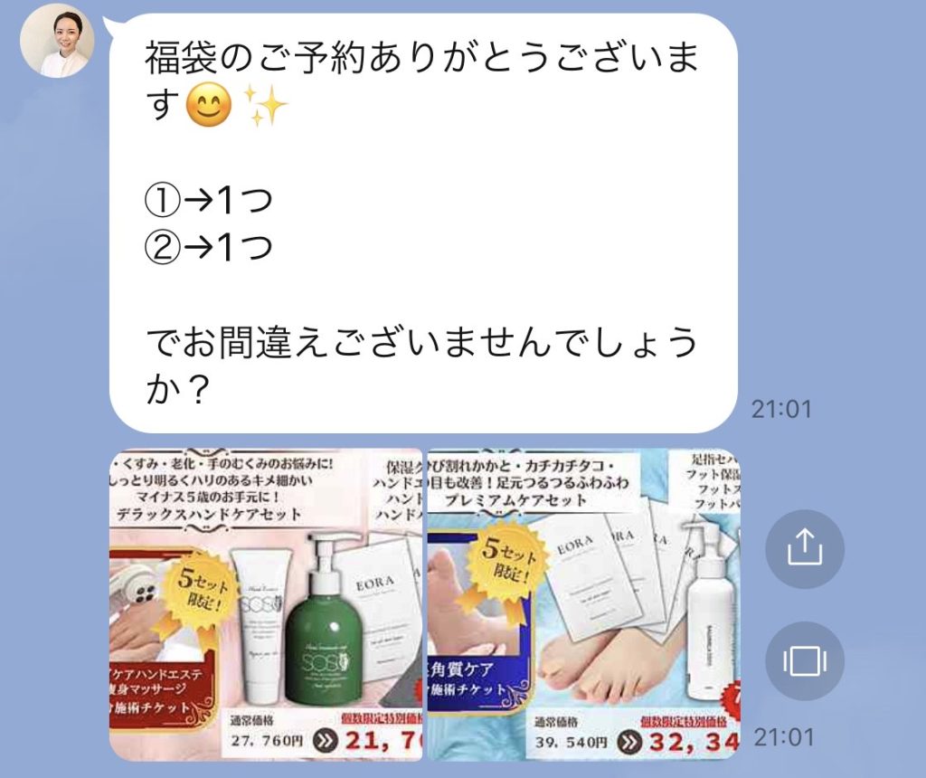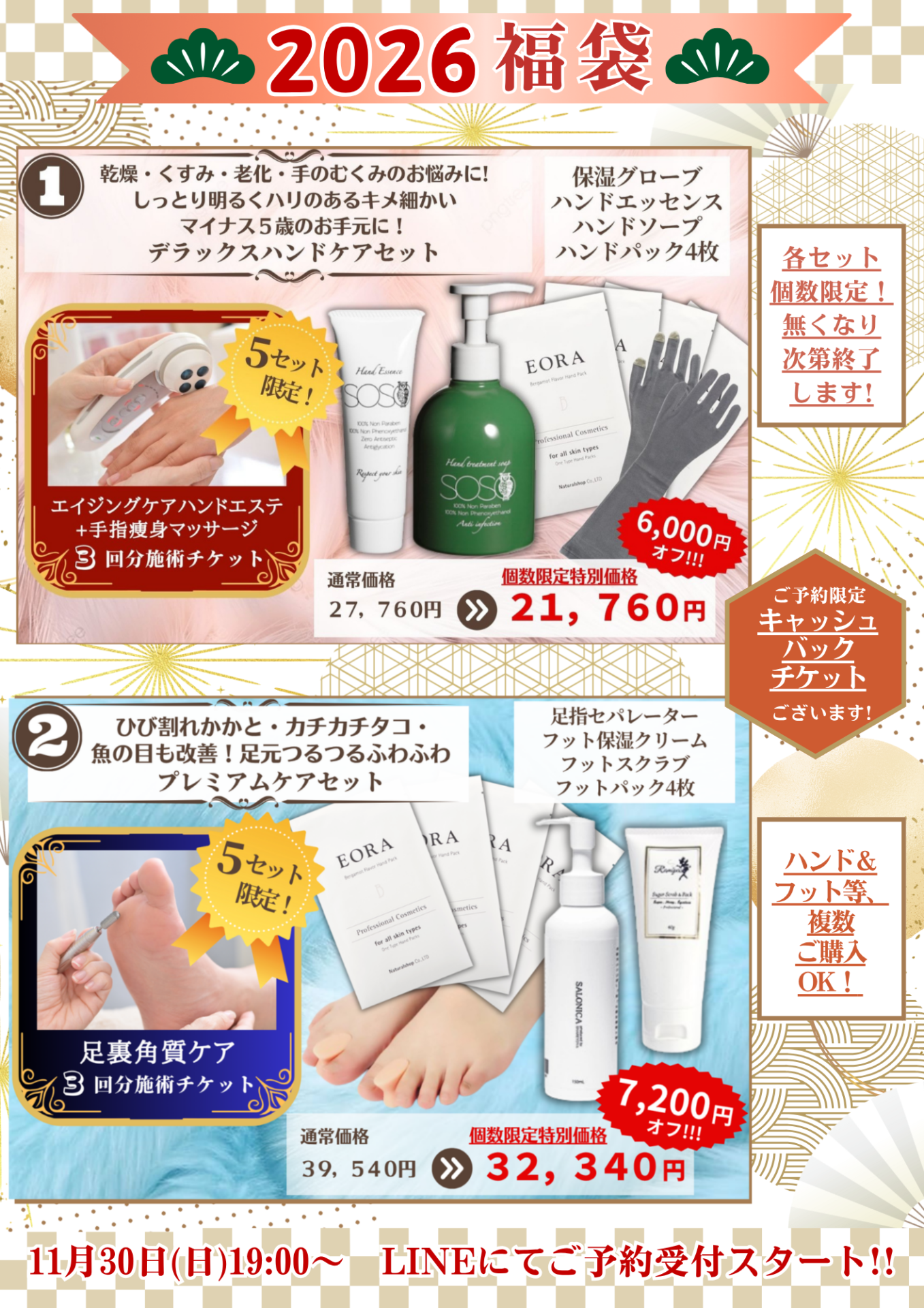 ハンドの福袋の「ハンドエステ3回チケット」は、
